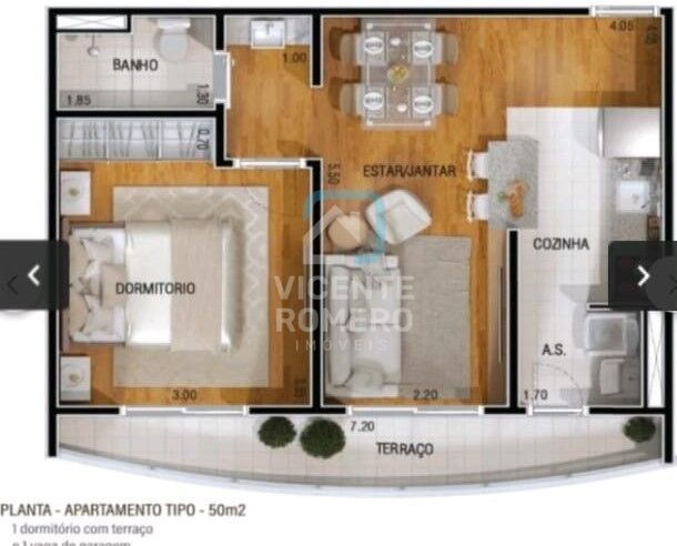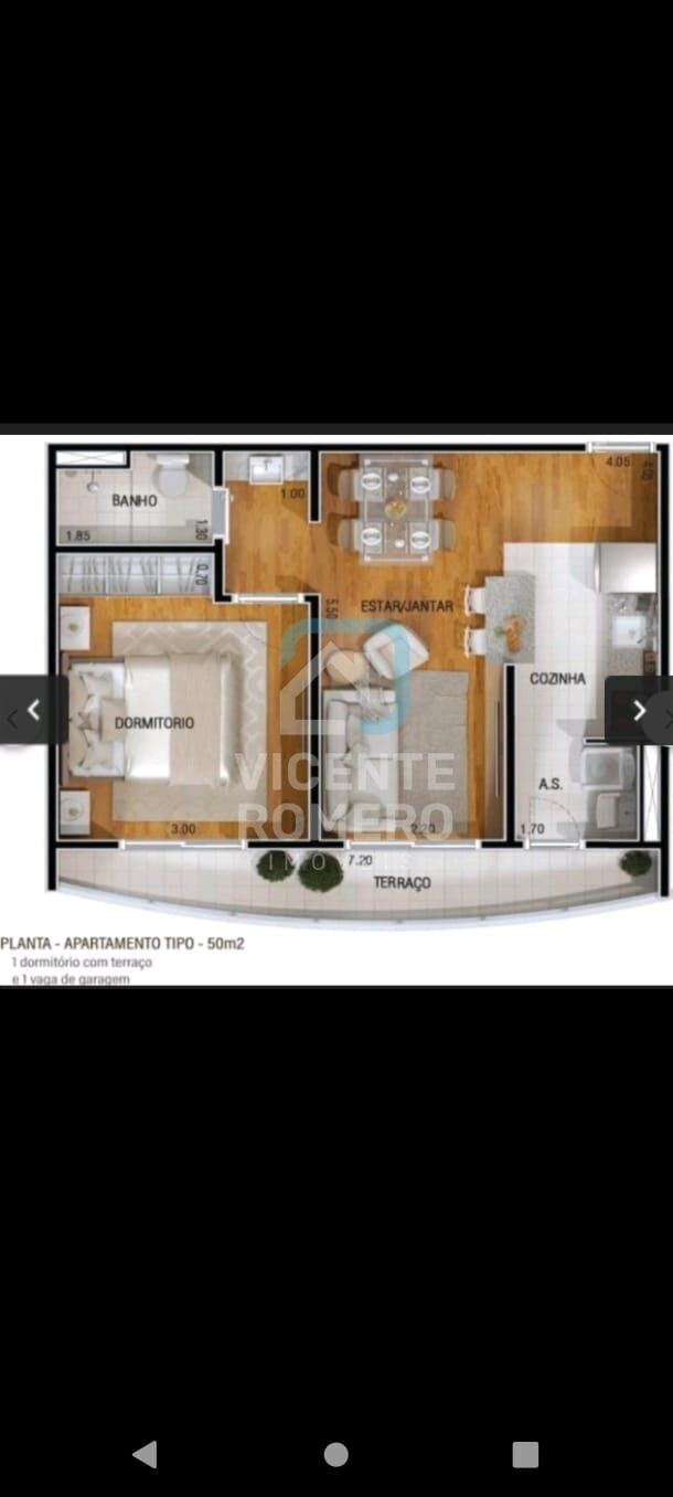 1 Dormitório1 Banheiro1 Vaga1 Cozinha1 Sala de jantar1 Área de serviço