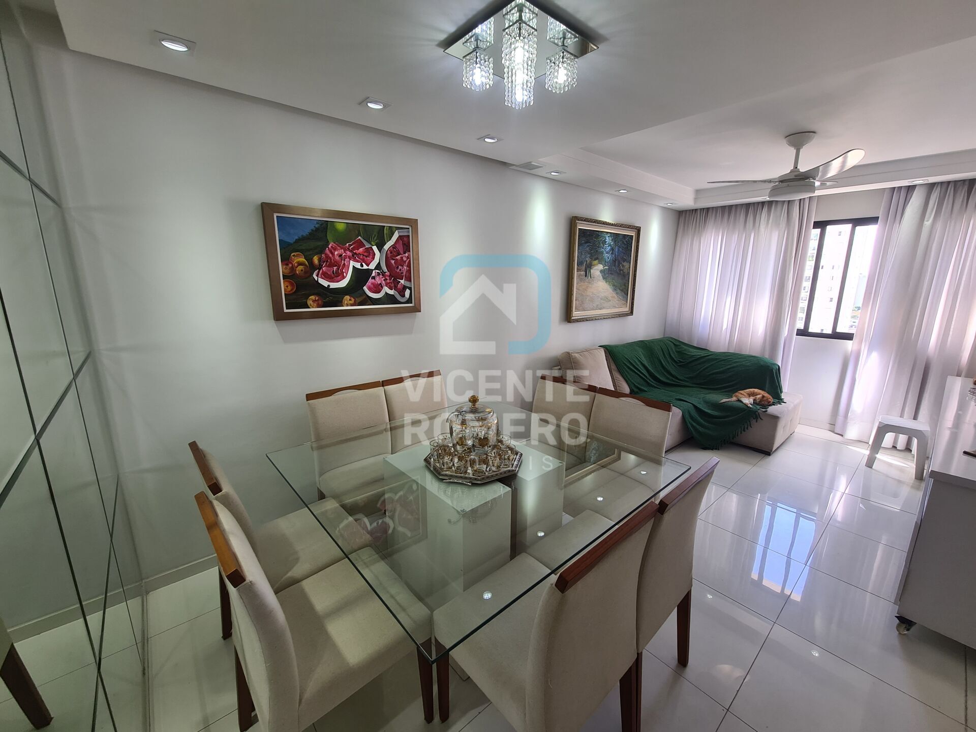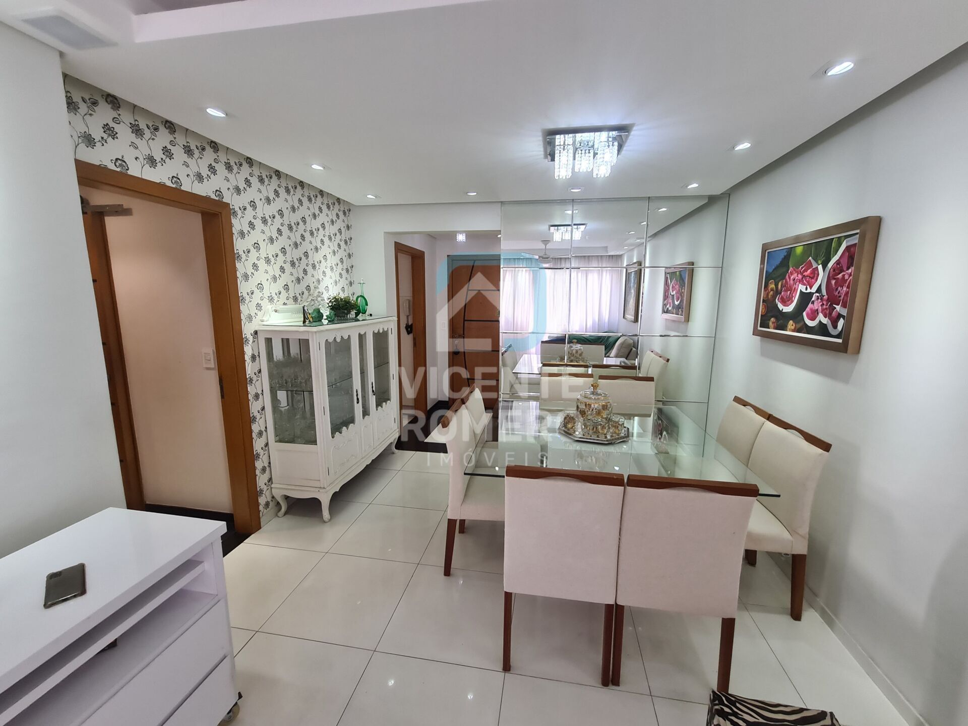 piso em porcelanato sanca em gesso teto rebaixado com lâmpadas Dicróica, fino acabamento